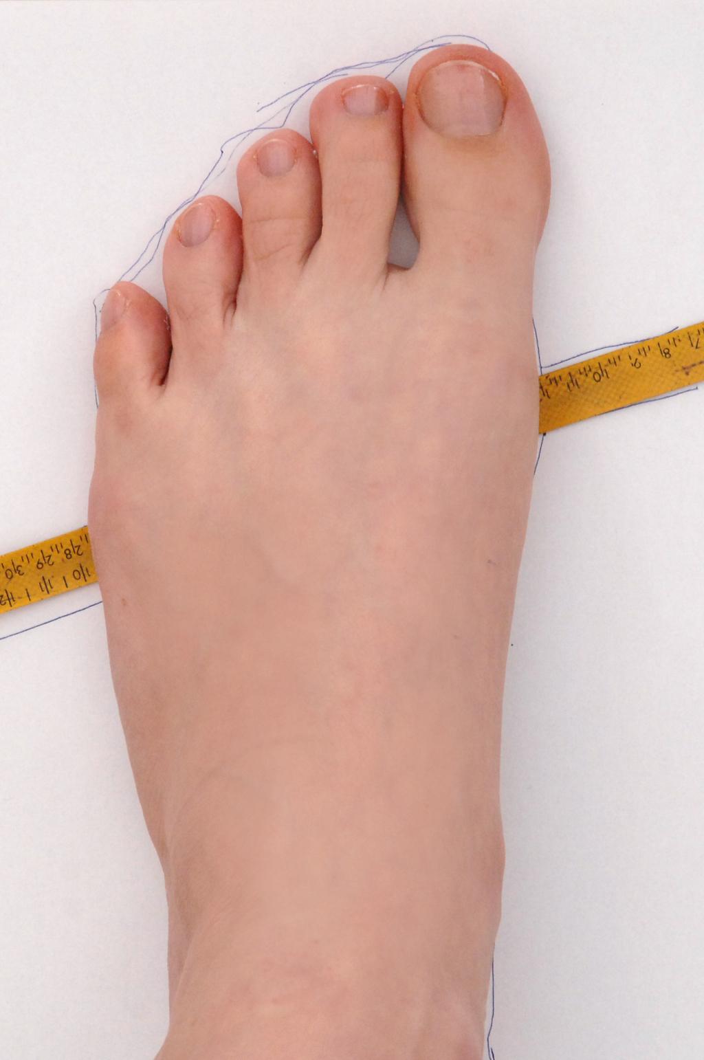 Állva készítsünk lábunkról körrajzot, merőlegesen tartva a papírlapra a ceruzát.